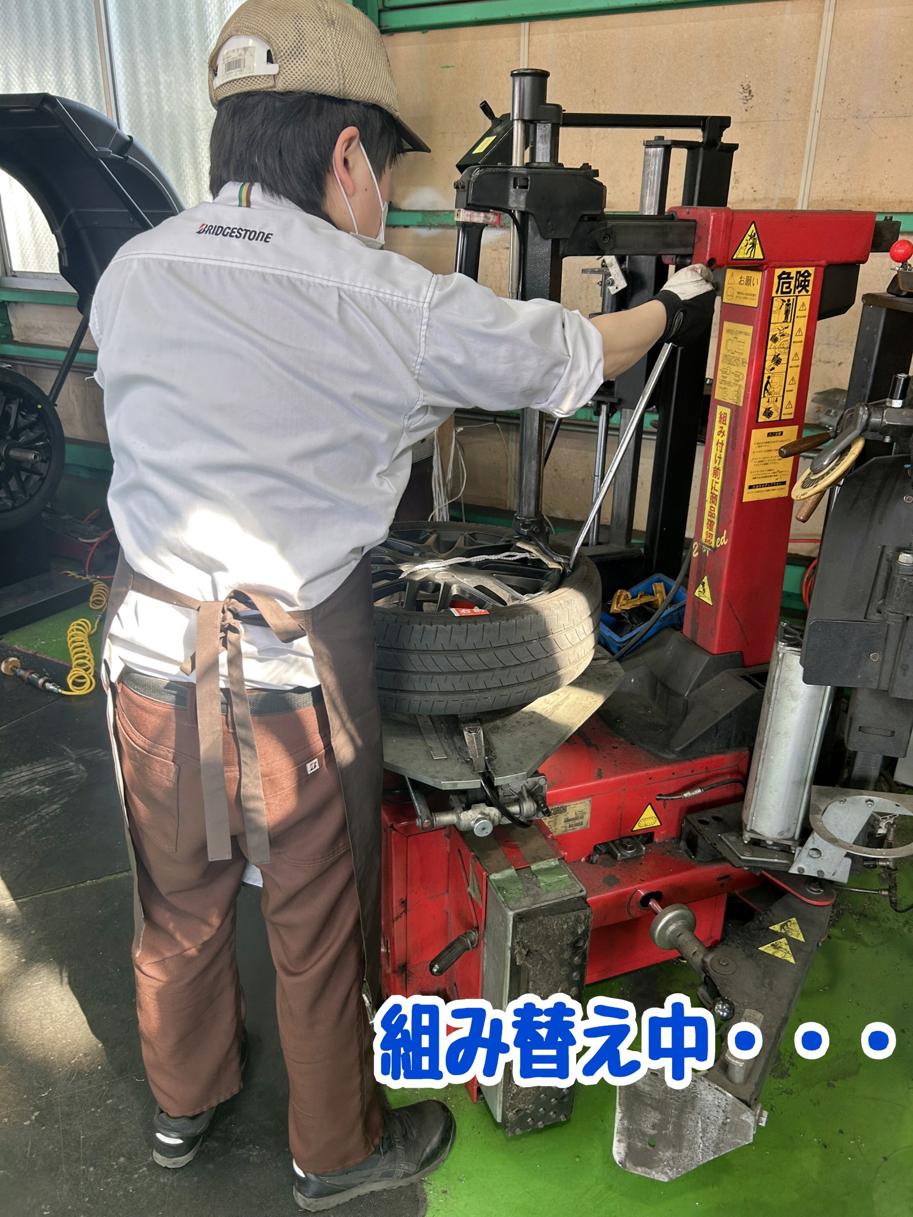 タイヤ組み換え作業中