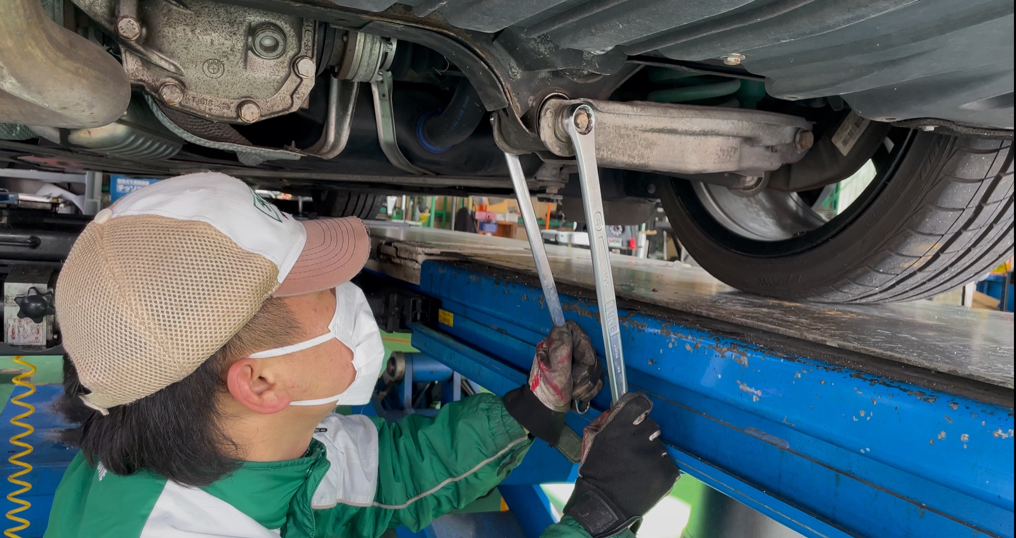 タイヤがしっかり接地するよう、データを確認しプロの技で調整しています!