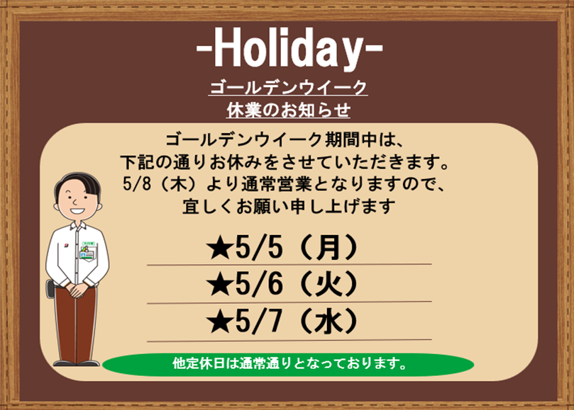 【GW期間営業日のご案内】☆お気軽にご利用ください☆