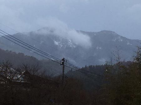 ふもとの山の頂上付近は雪が積もって降りましたが、