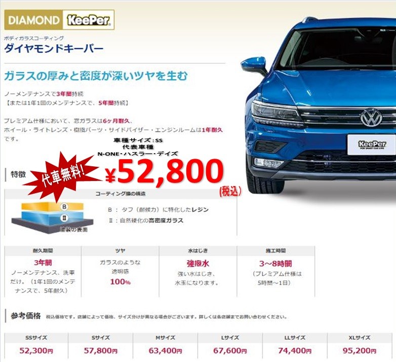 強いツヤと、存在感!!ダイヤモンドキーパーは52,300円~(ムーヴ・N-WGN等)