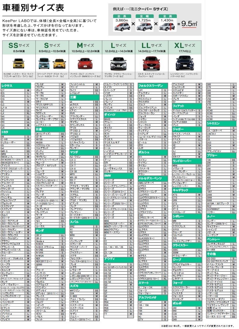 ご自身の車種はいくら掛かるの?って方は下記の表を参照して下さい。