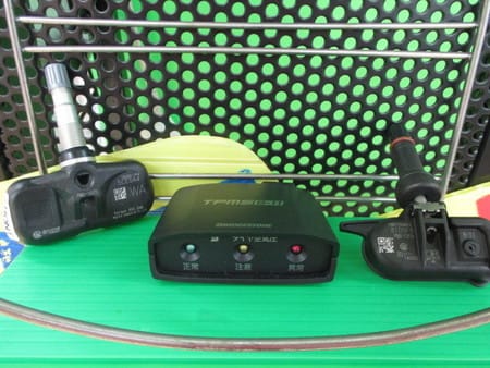 タイヤホイールにセンサー送信機を付けて、車内に受信機を付けることによって、
