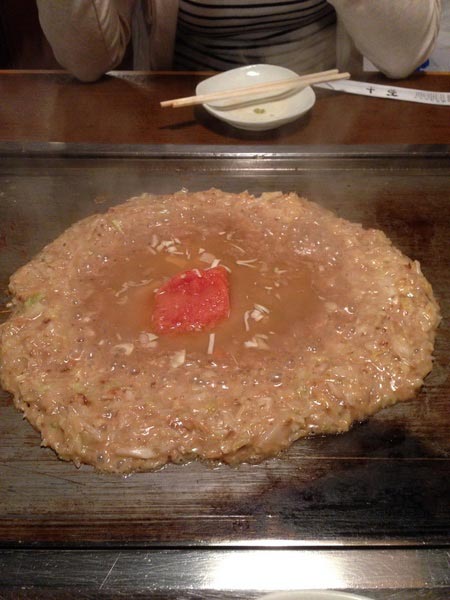 夕食はもんじゃ焼き!!いつもすぐに入れる店も一時間程待ってました!