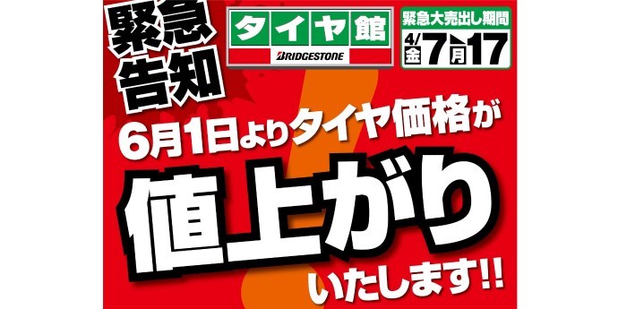 タイヤ値上げ前『緊急大売出し』開催中!残り2日間です!
