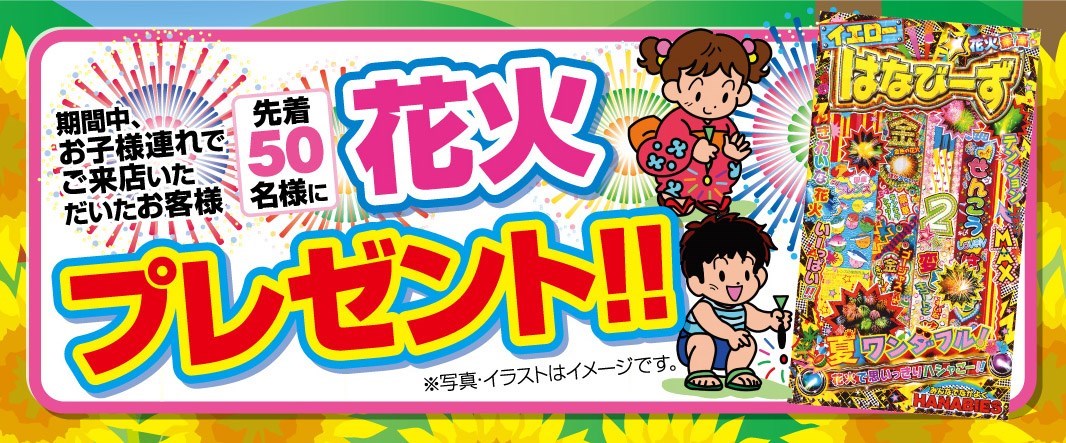 セール期間中、お子様連れでご来店で【花火】プレゼント!!!