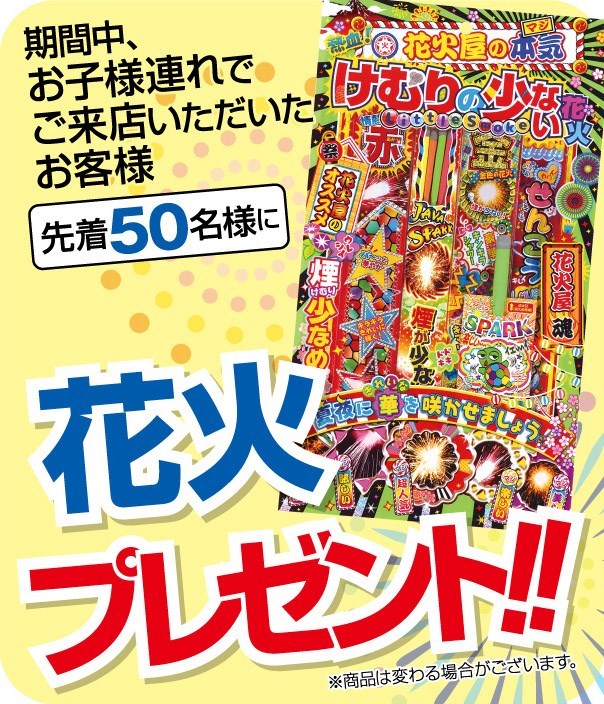 先着50名様に花火をプレゼントいたします♪♪