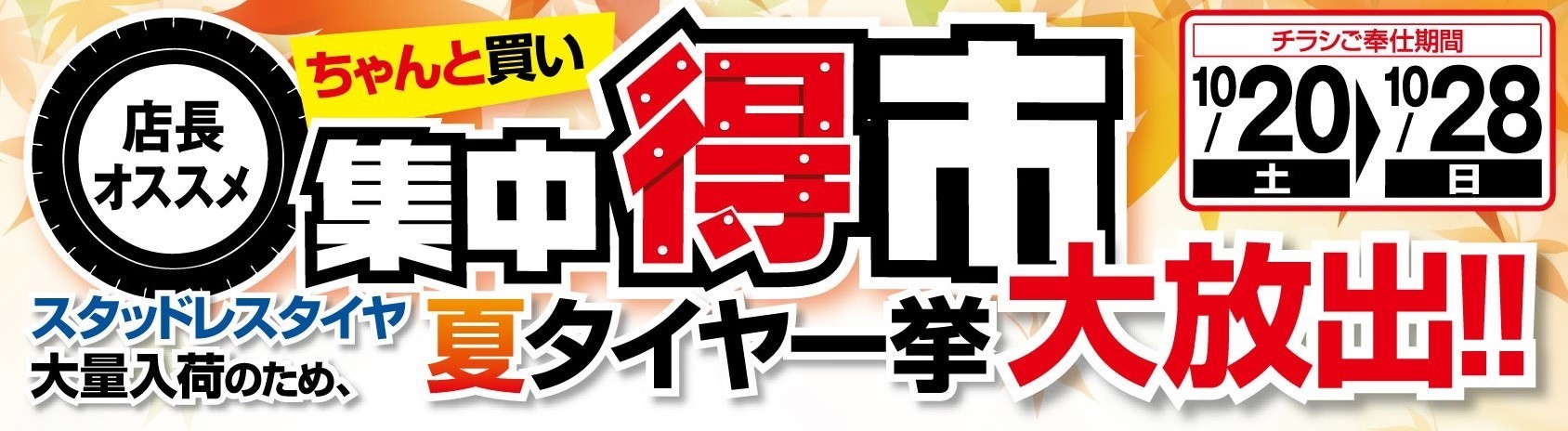 只今好評開催中の『集中得市』セール期間は10月28日(日)まで!!