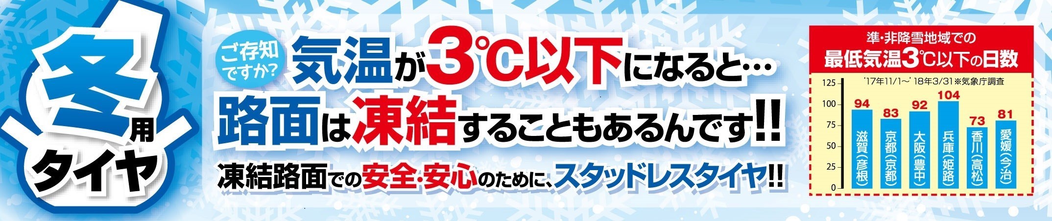 何度かご紹介させて頂いているように、気温が3度以下になると、路面凍結の恐れがあります!