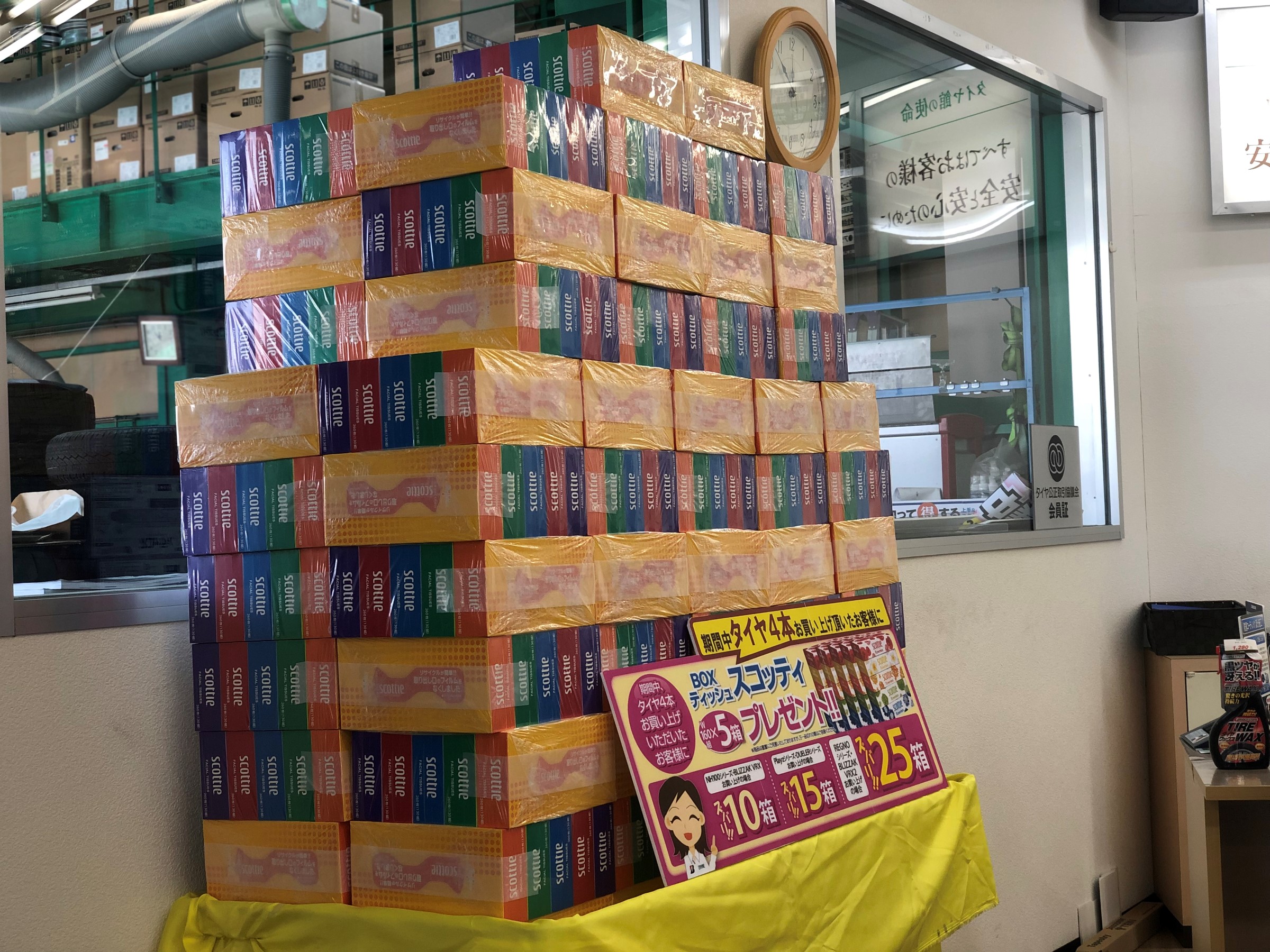 タイヤ4本ご購入いただいたお客様にプレゼント中のBOXティッシュも大好評です!