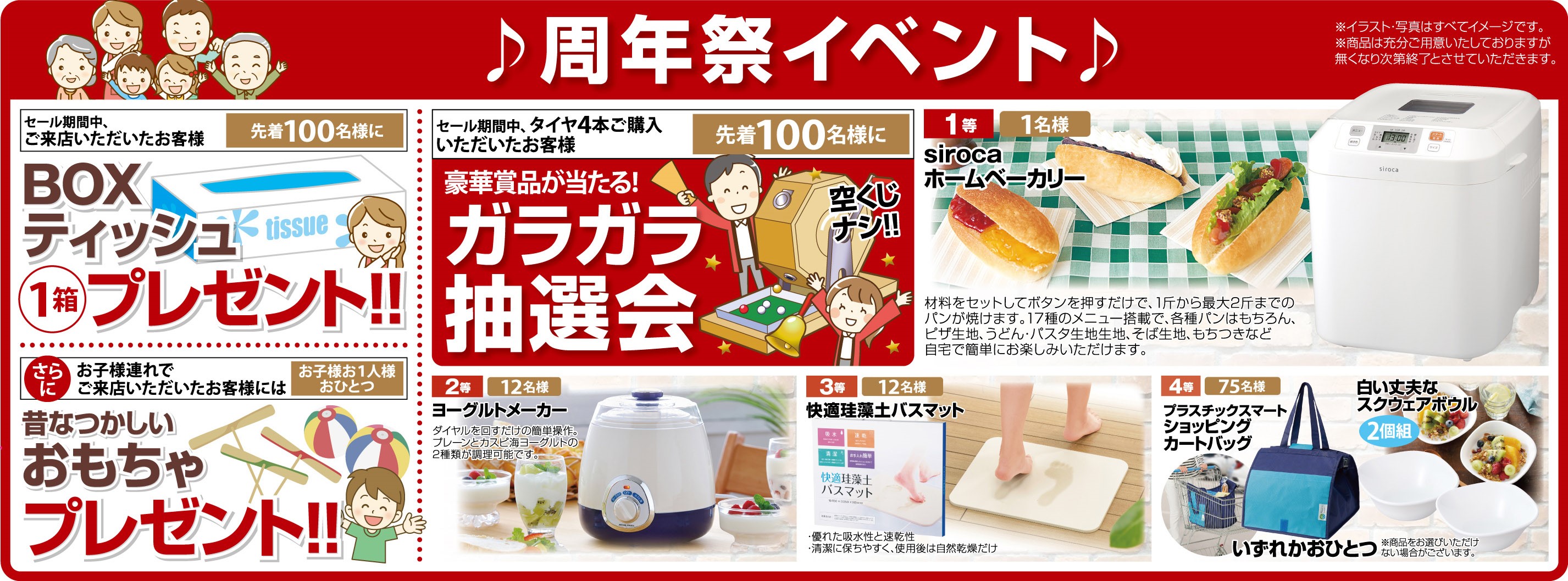 もちろん、タイヤをはじめ様々な商品も周年祭価格で大奉仕中!
