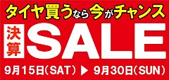 いつもタイヤ館河内長野のホームページをご覧頂き誠にありがとうございます。 いよいよ明日より『決算セール』を開催致します♪♪ セール期間は9月15日(土)~9月30日(日)まで。 秋のお出掛け前のタイヤ交換は、今がチャンスです!! 只今スタッドレスタイヤ大量入荷の為、 夏タイヤ・昨年入荷スタ...