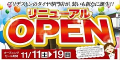いつもタイヤ館河内長野をご利用頂き誠にありがとうございます。 只今開催中の【リニューアルオープンセール】 セール期間は11月19日(日)まで!! リニューアルオープン記念価格でお買得品盛り沢山♪♪ スタッフ一同お客様のご来店を心よりお待ちしております!