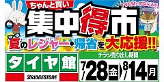 只今好評開催中の【集中得市】セール! セール期間は8月14日(月)までとなっております。 今週末からお休みの方も多いかと思います。 夏のレジャー・帰省の前にしっかりとメンテナンスをして、 快適なドライブ・レジャーを楽しみましょう♪♪ 沢山のご来店心よりお待ちしております。