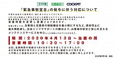 新型コロナウイルス感染拡大防止の為の 緊急事態宣言を受け、お客様及び従業員の 安全と健康を第一に考え、 未だ完全収束が見えないこともありますが、 5月16日(土)から17時閉店を、 当面の間、18時閉店とさせていただきます。 【営業時間】10:30~18:00 【期間】5月16日(土)~当面の間 ご不便...