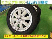 いつも当店のホームページをご覧頂き、ありがとうございます。 タイヤ交換のついでにアルミホイールでもいかが? っと言う事で、紹介するアルミホイールはこれ!! 「LaLaPalm CUP」です!! 14X4.5 4-100 +45 パールホワイト&リムポリッシュ エコピア NH100C「155/65R14」をセッ...