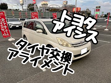 タイヤの無料点検行っています!! いつもタイヤ館 河内長野のホームページをご覧いただきありがとうございます! 本日のご紹介は< トヨタ アイシス >です!! 作業内容は【 タイヤ交換 & アライメント測定・調整 】でございます★ TOYOTA ISIS 今回お選びいただいたタイヤは 【 ルフト RVⅡ 】 タイヤ...