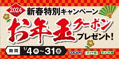 いつもタイヤ館 河内長野のホームページをご覧いただきありがとうございます! 新春キャンペーンであるお年玉クーポンプレゼントの セール期間が【 1月31日(水) 】までとなっております!! セール期間ではお買得商品多数ご用意!! スマホにてタイヤ館のアプリをご登録いただくと、(ご登録済みの方に...