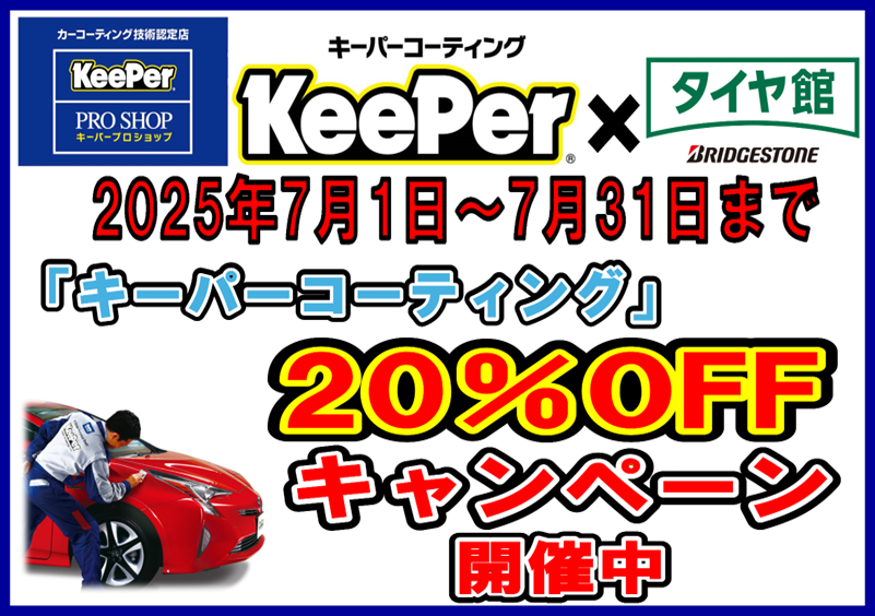 いつもタイヤ館 河内長野のホームページをご覧いただきありがとうございます! タイヤ館 河内長野では【 ボディコーティング 】の施工を承っております!! < KEEPER (キーパー) > ガラス系の撥水コーティングで、 1年に1回施工目安でリーズナブルにツヤを出して撥水するコーティングから、 3層の...