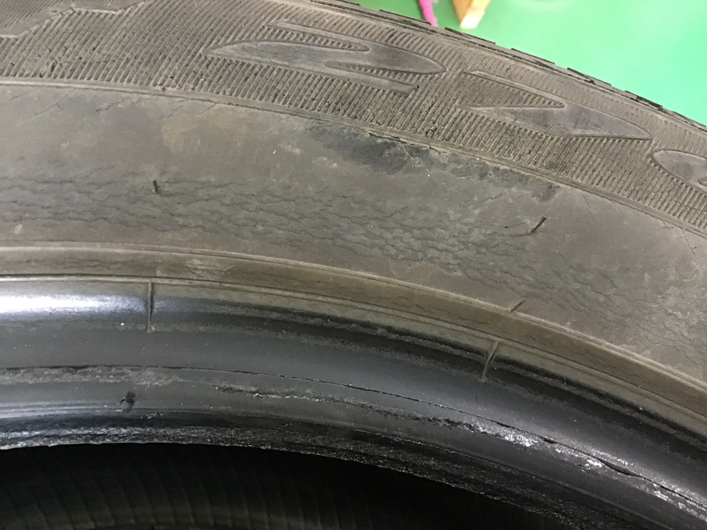 タイヤの劣化により、どちらもひび割れが出始めていることがわかります。