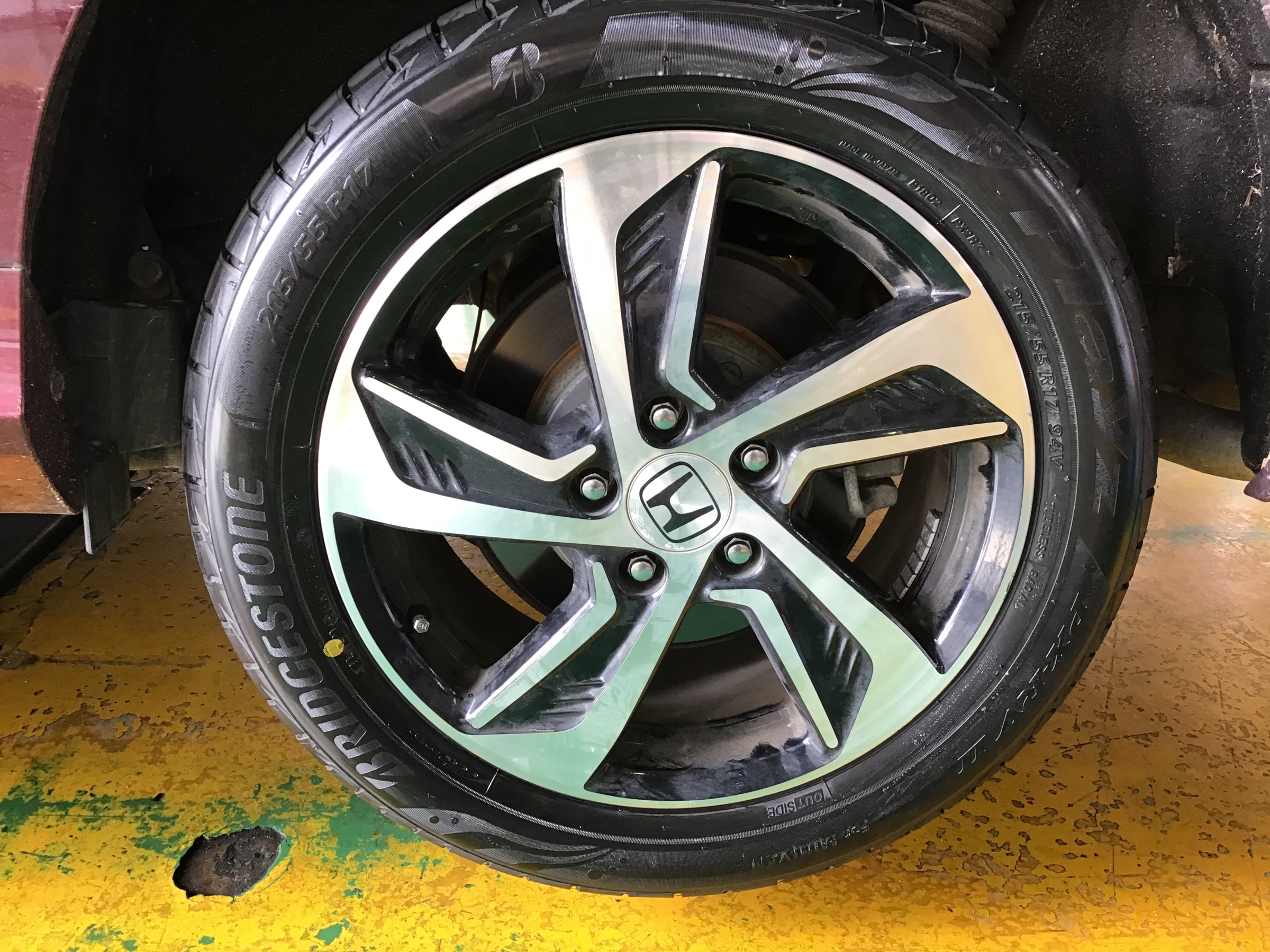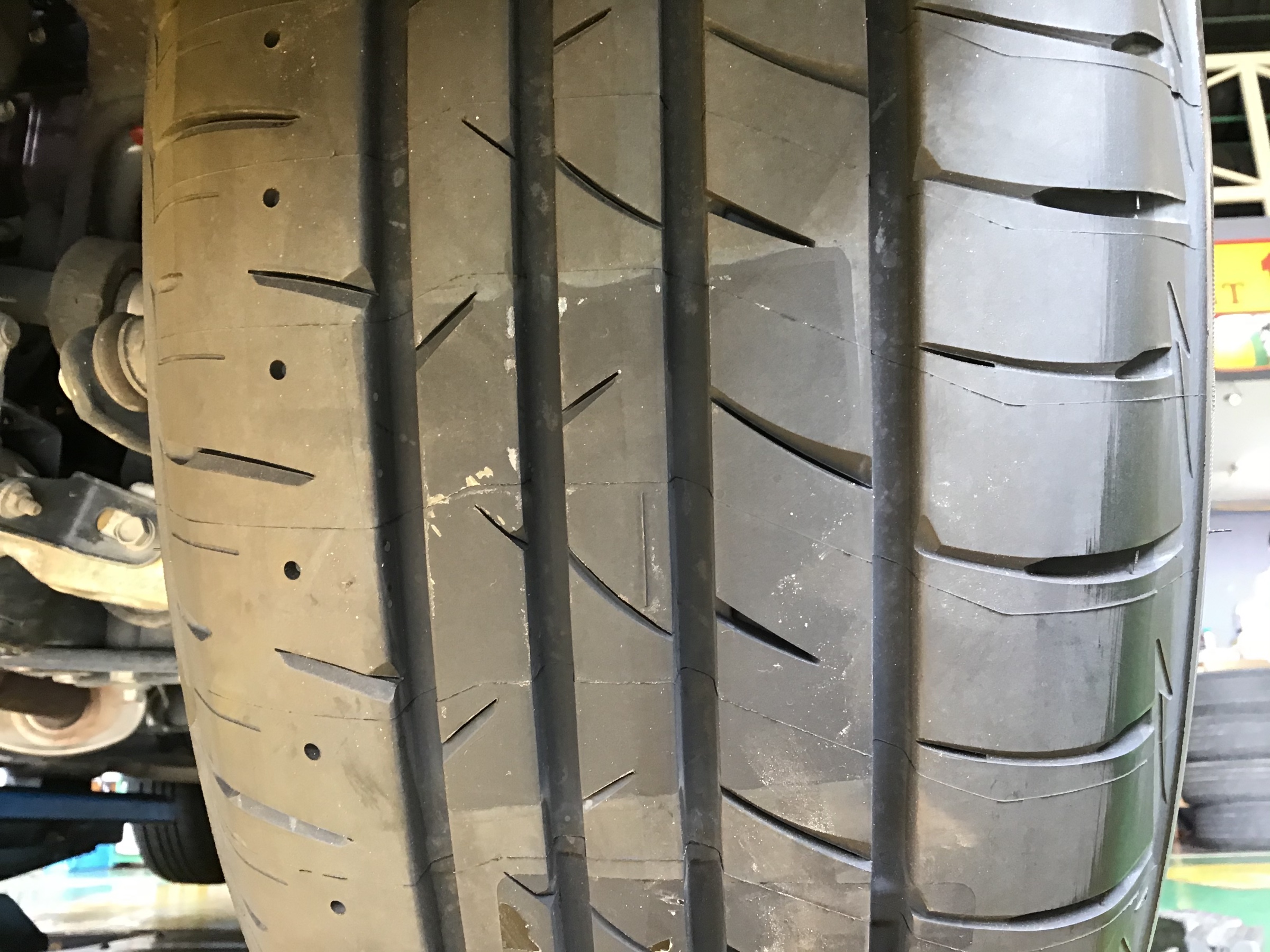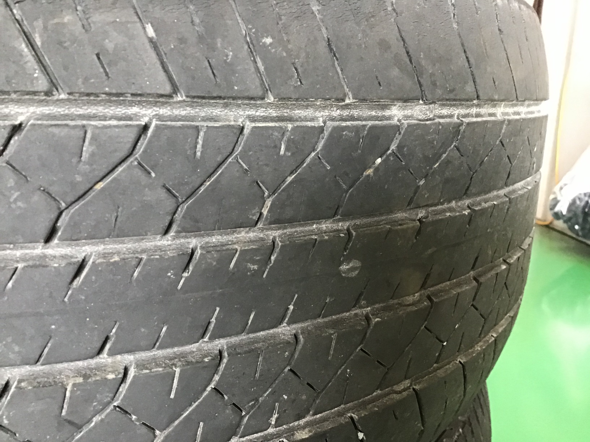 お車を入庫する際、はじめにタイヤの点検をさせていただきました。