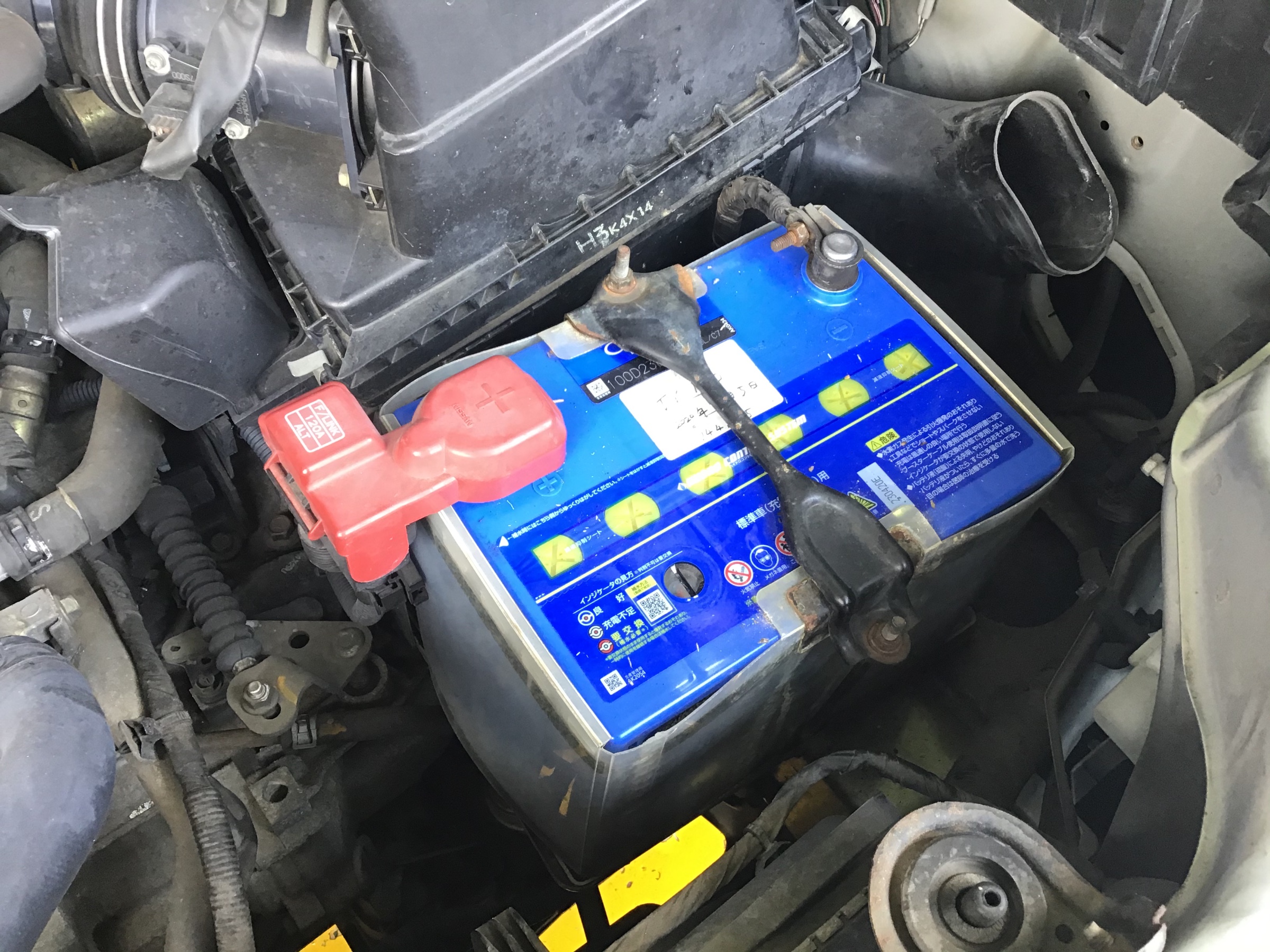 交換前のバッテリーは電圧も低くなっており、年数も4年ほど経過していました。