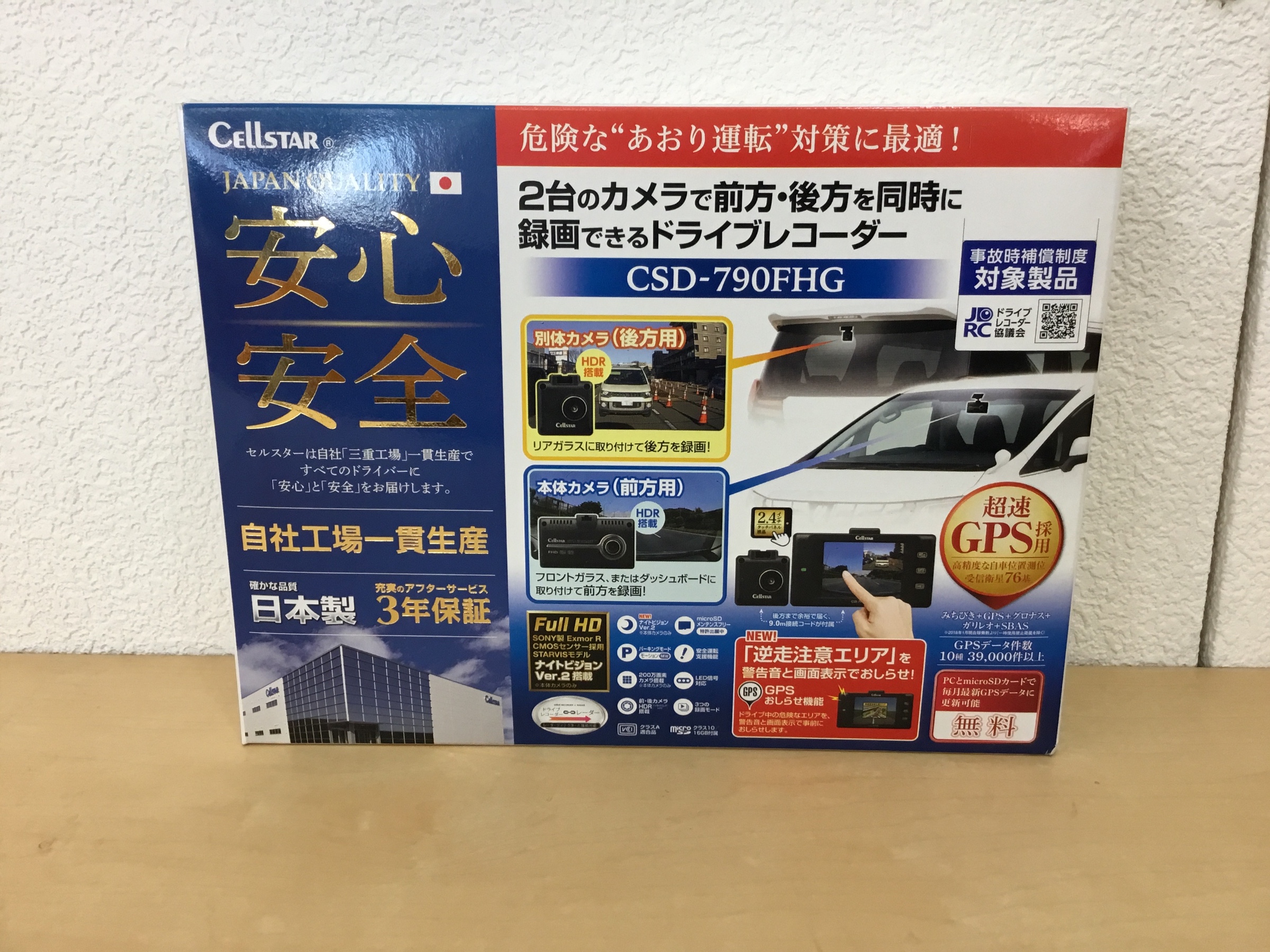 2台のカメラで前方、後方を同時に録画できるドライブレコーダー