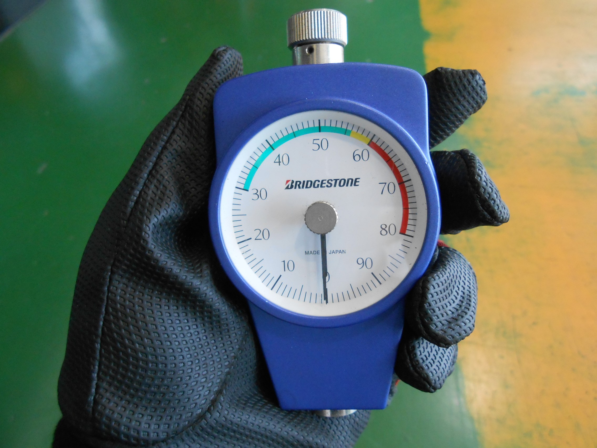 その針の部分を、トレッド面(地面への接地面)に押し当てることで硬さを測定できます。