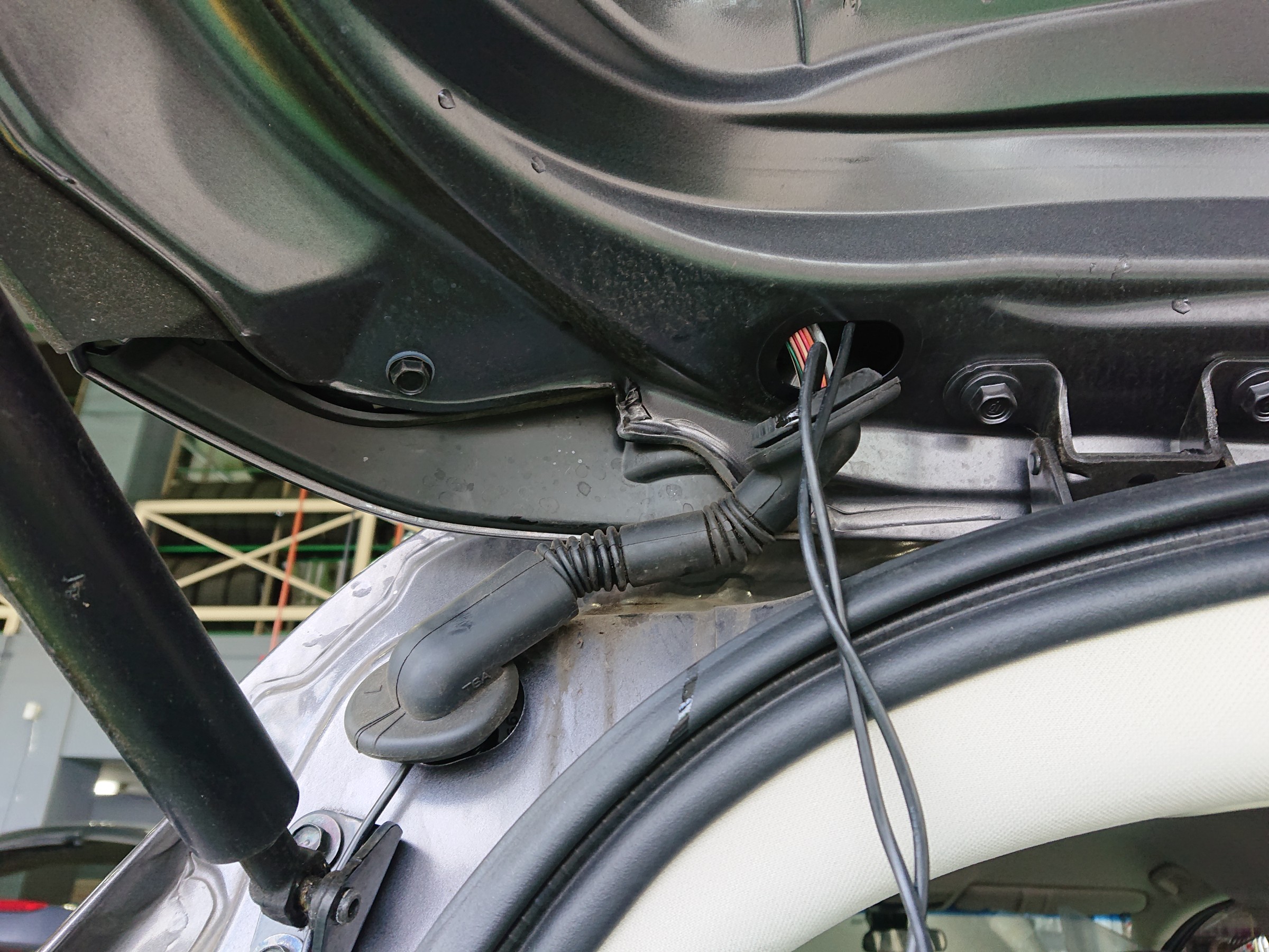 リアカメラの配線は、露出しないように純正の配線ルートに沿って