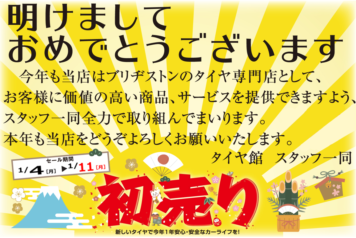 あけましておめでとうございます! ポスト 2021年1月1日 あけましておめでとうございます! 今年もタイヤ館川口店をよろしくお願いいたします!! 1月1日~3日まではお休みをいただいております。 1月4日から営業再開となります。 年始早々初売りセールです( *´艸`) 皆様のご来店、スタッフ一同、心よりお待ちしております!! 担当:疋野