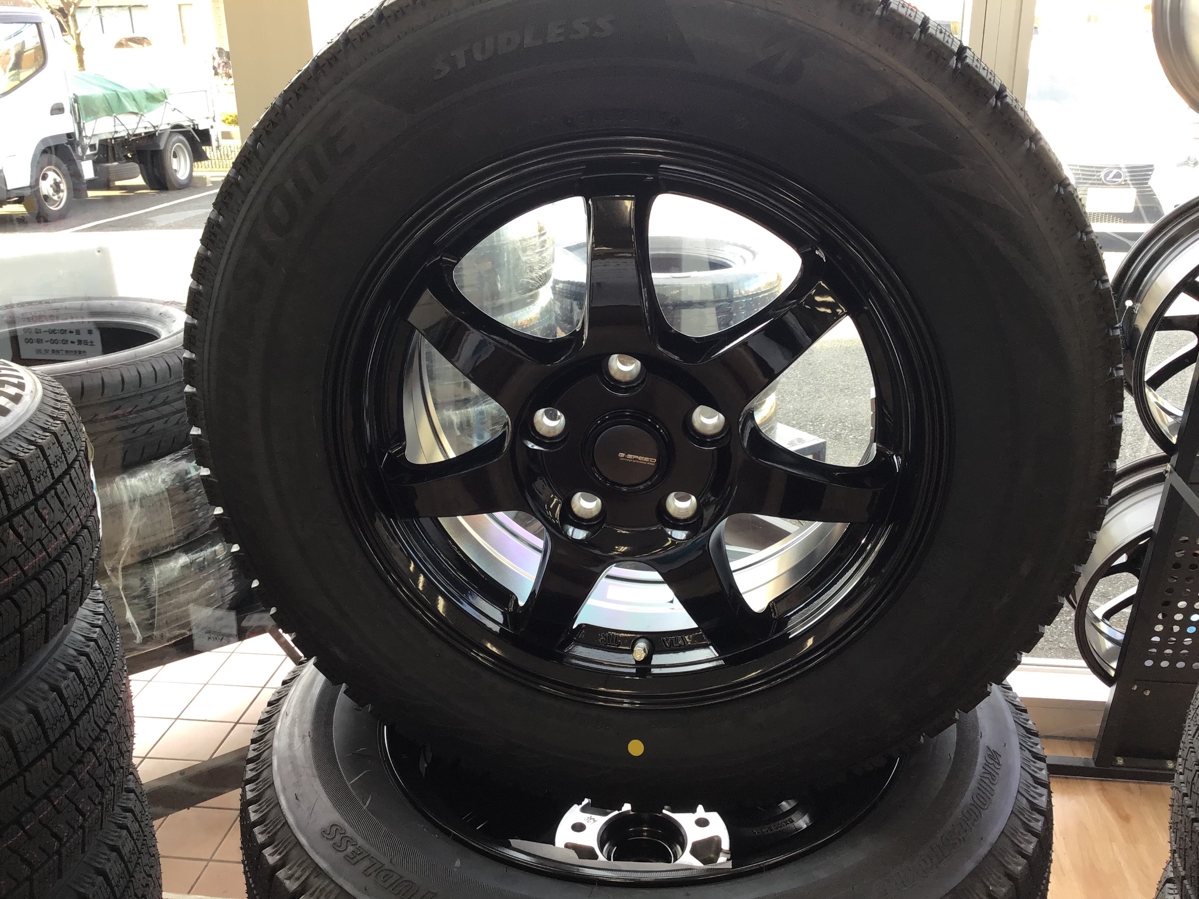 スタッドレスタイヤホイールセット品。お持ち帰り出来ます。勿論取り付けもできます。そんなセット品のご紹介。