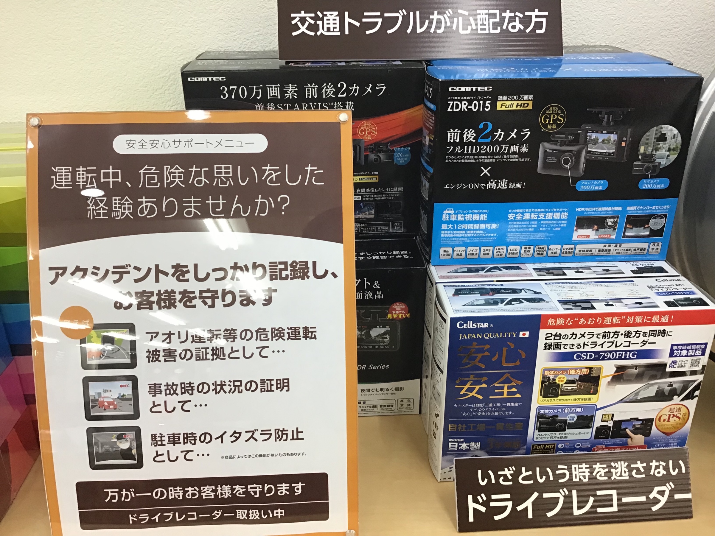 もしもの時に記録を残すドライブレコーダー ポスト 2021年2月8日 みなさまこんにちは 最近ドライブレコーダーの問い合わせ、取り付けをする方が増えてます あおり運転対策に、駐車中の当て逃げ対策に、事故の時の証拠になどなど 用途によって、選び分けしましょう。。 種類が多くありますので詳しい詳細は、当店スタッフまでお問い合わせください。 お気軽にご来店下さいね☆ 担当:川鍋