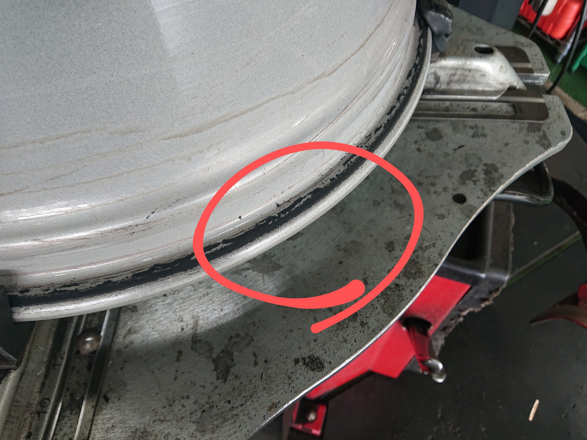 早速交換作業、先ずは古いタイヤを外して行きます。