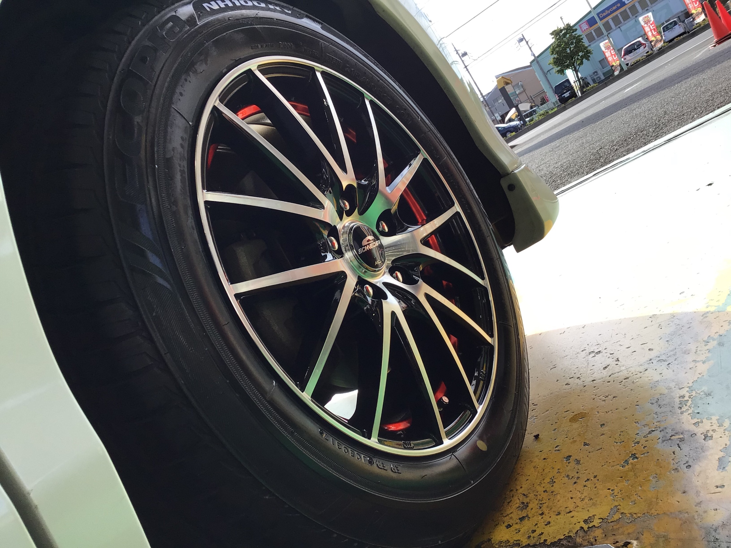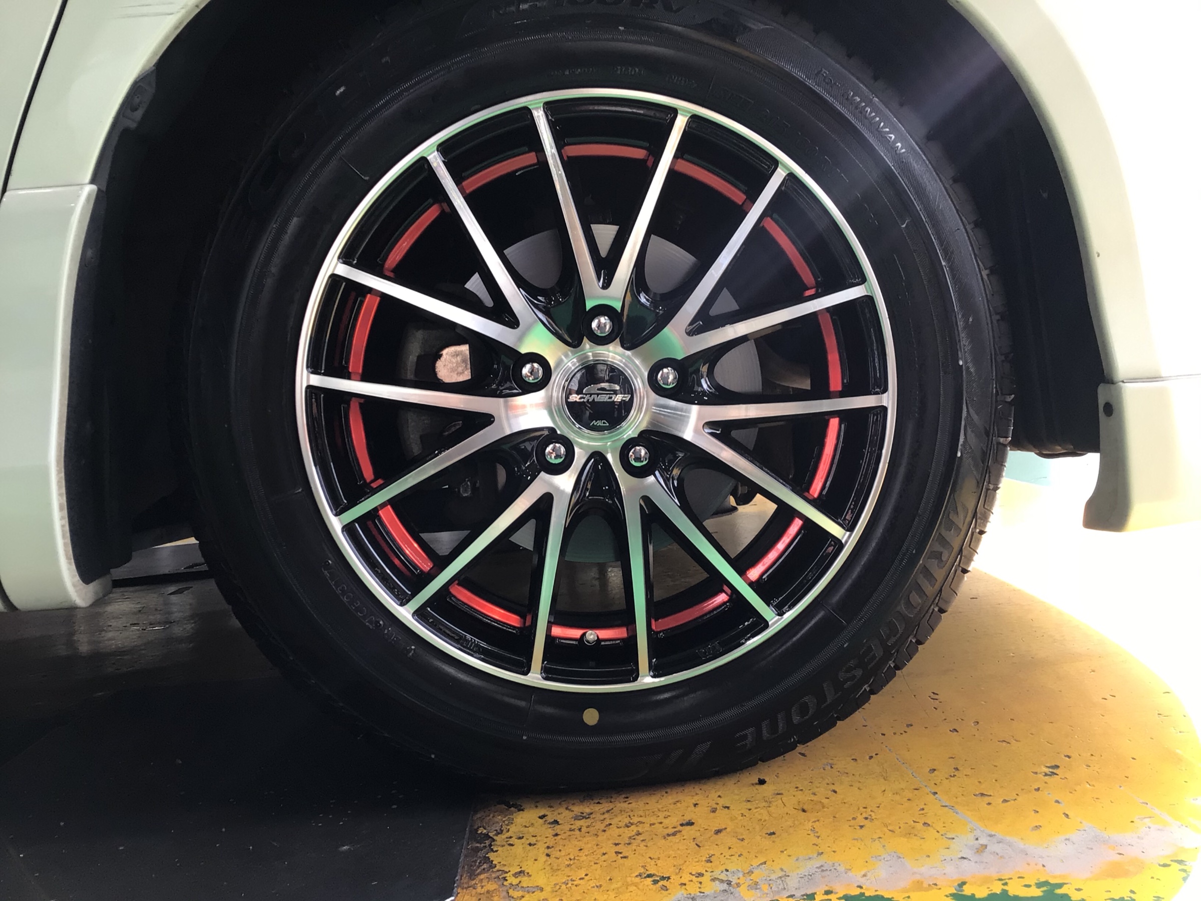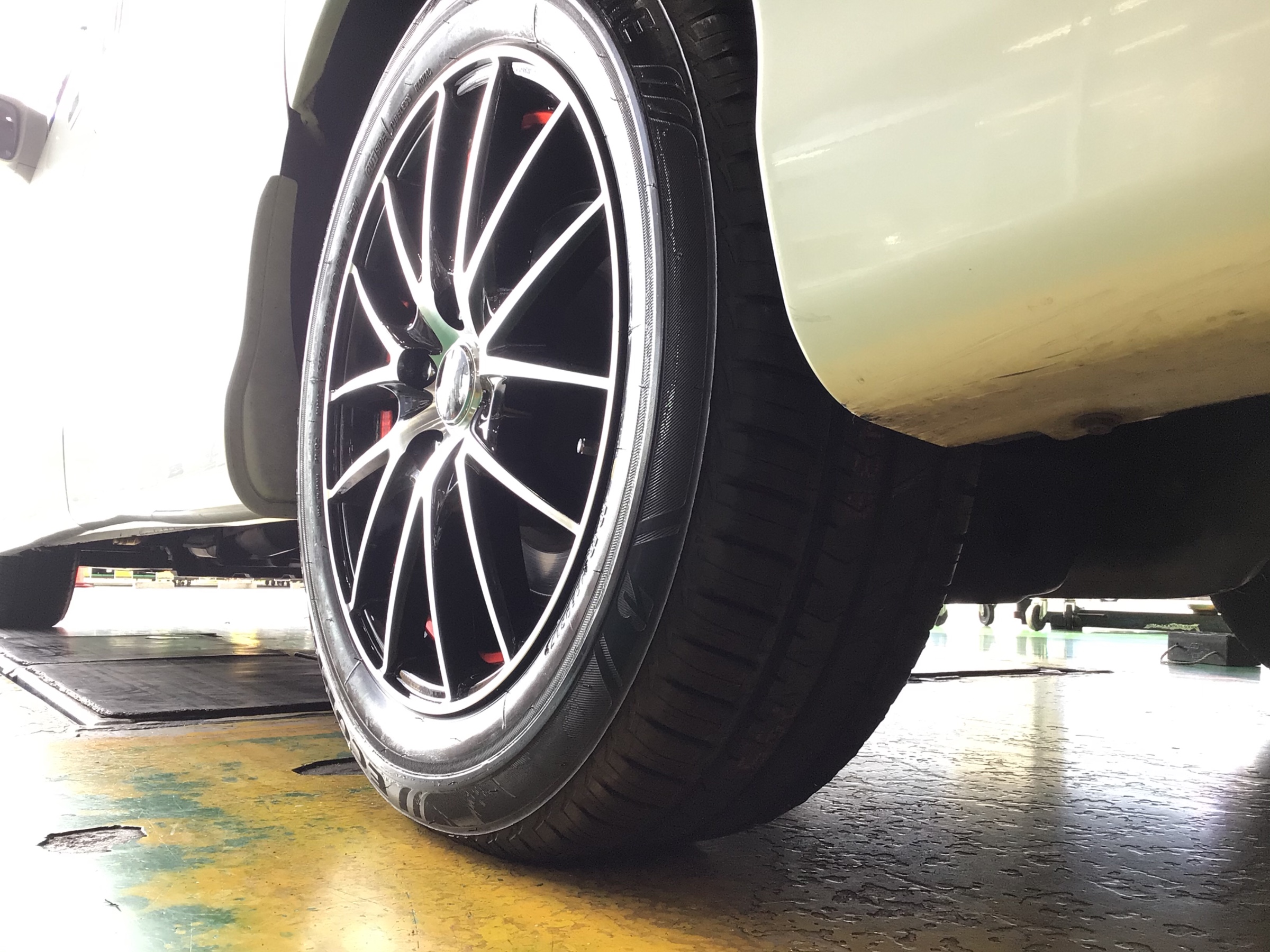 純正アルミホイールにて組み込み、取り付けがされていました。