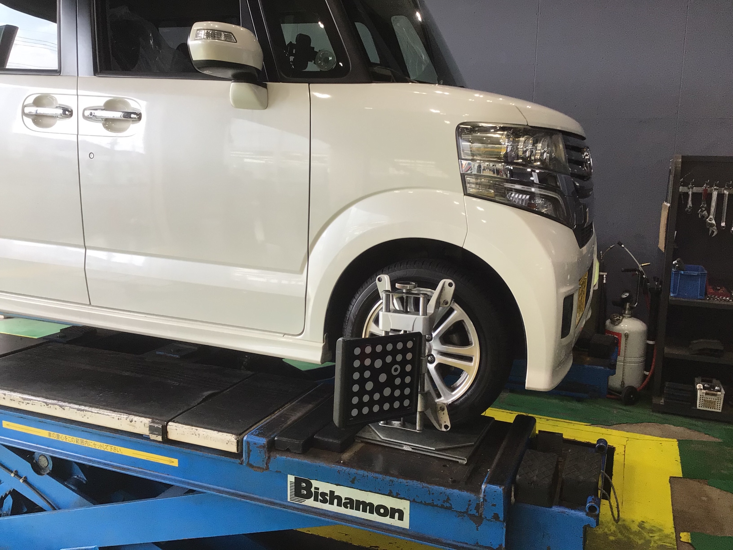 最後は偏摩耗があったので車の骨盤矯正アライメント調整です。