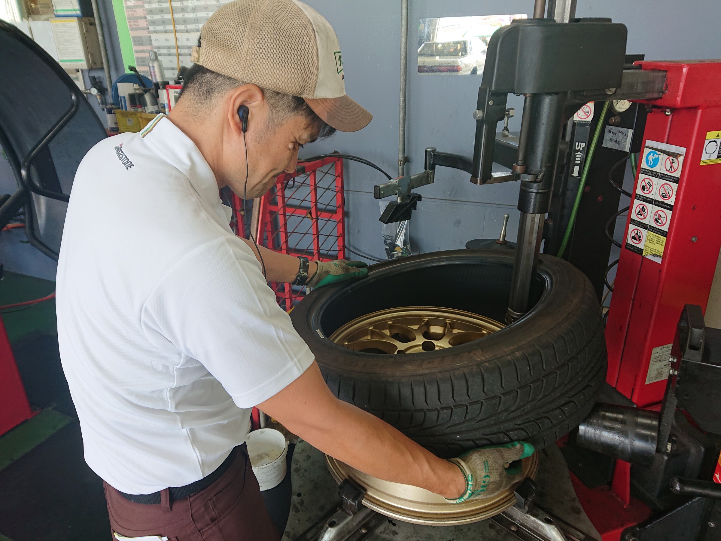 取り付けは、タイヤ館のお家芸「センターフィット」で