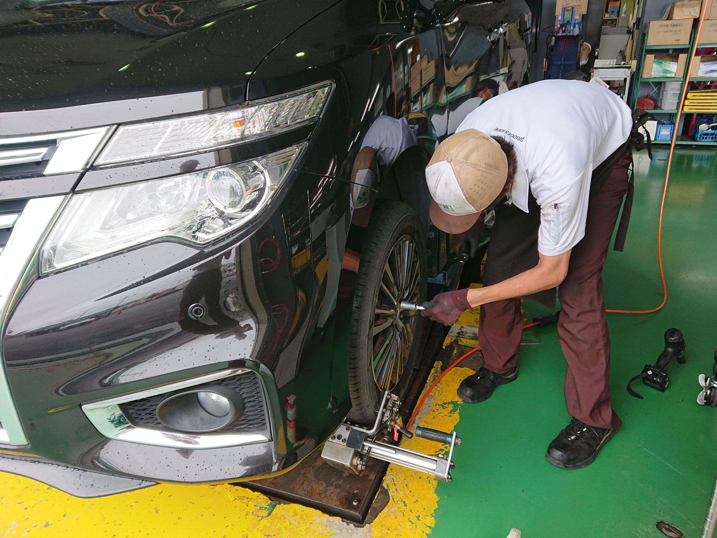 仕上げは、タイヤ館の専門店作業の一つ「センターフィット」で