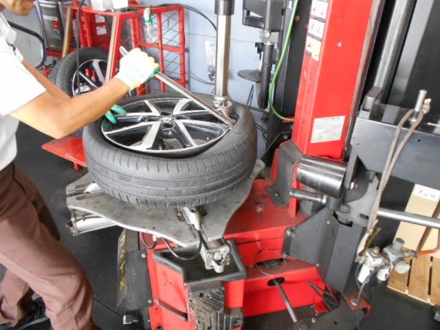 交換してから新しいタイヤを組付けます。