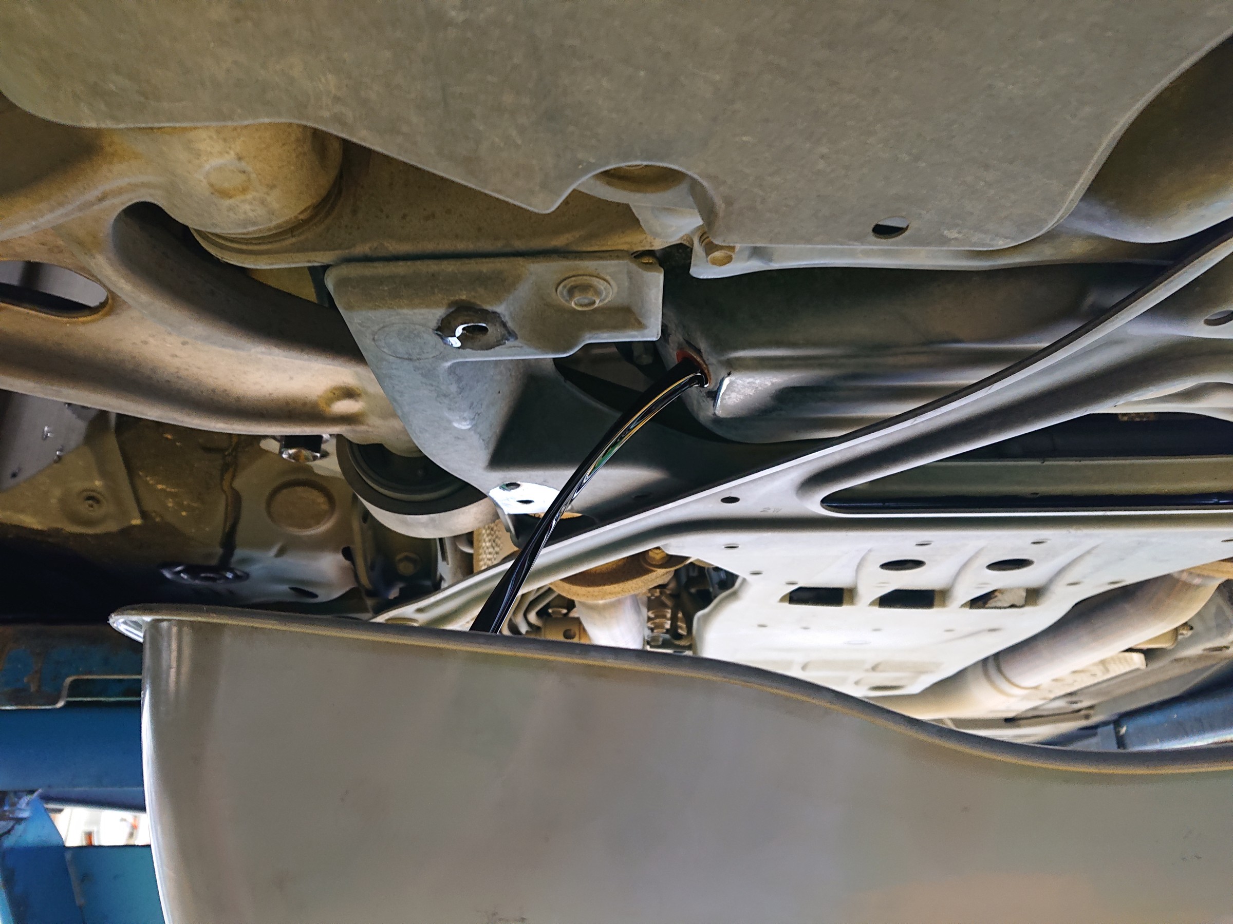 リフトアップし、古いオイルを抜いて参ります。