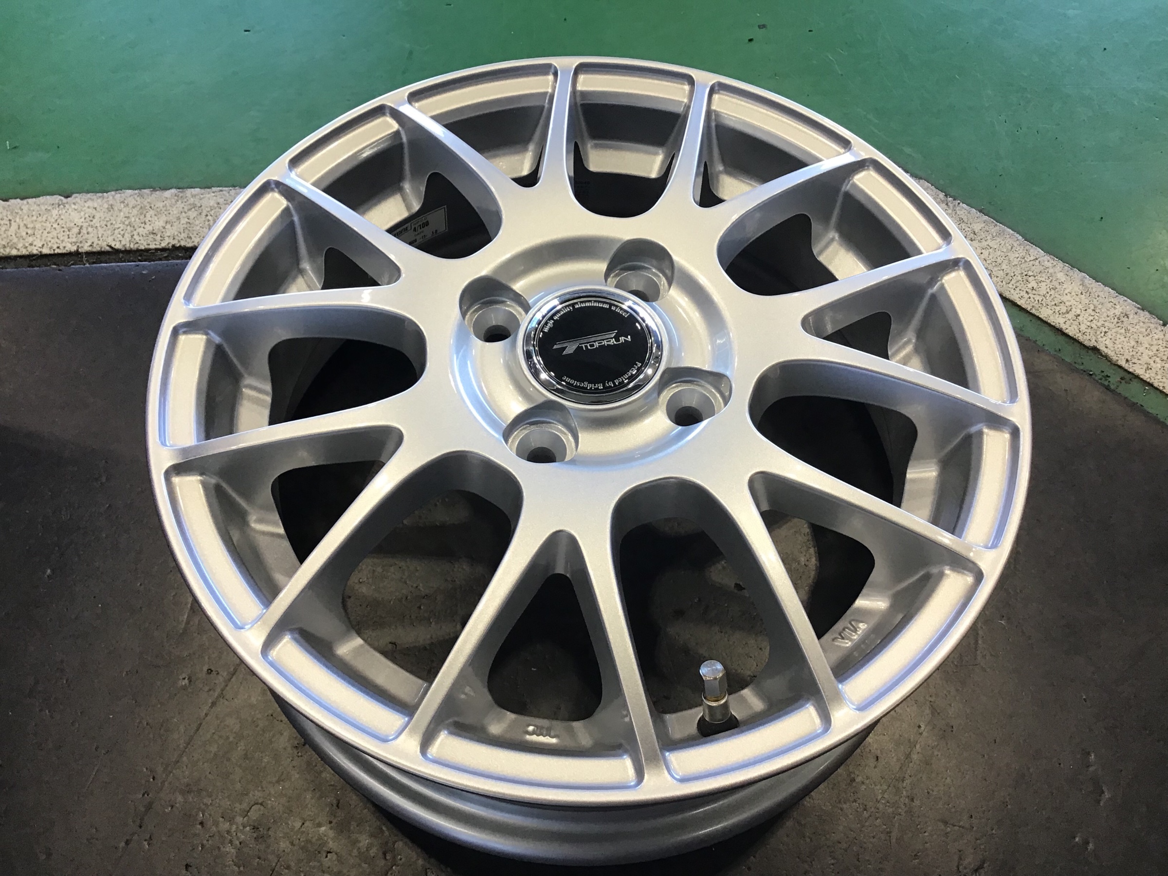 タイヤは再利用し、新品アルミホイールに組み込みしていきます。