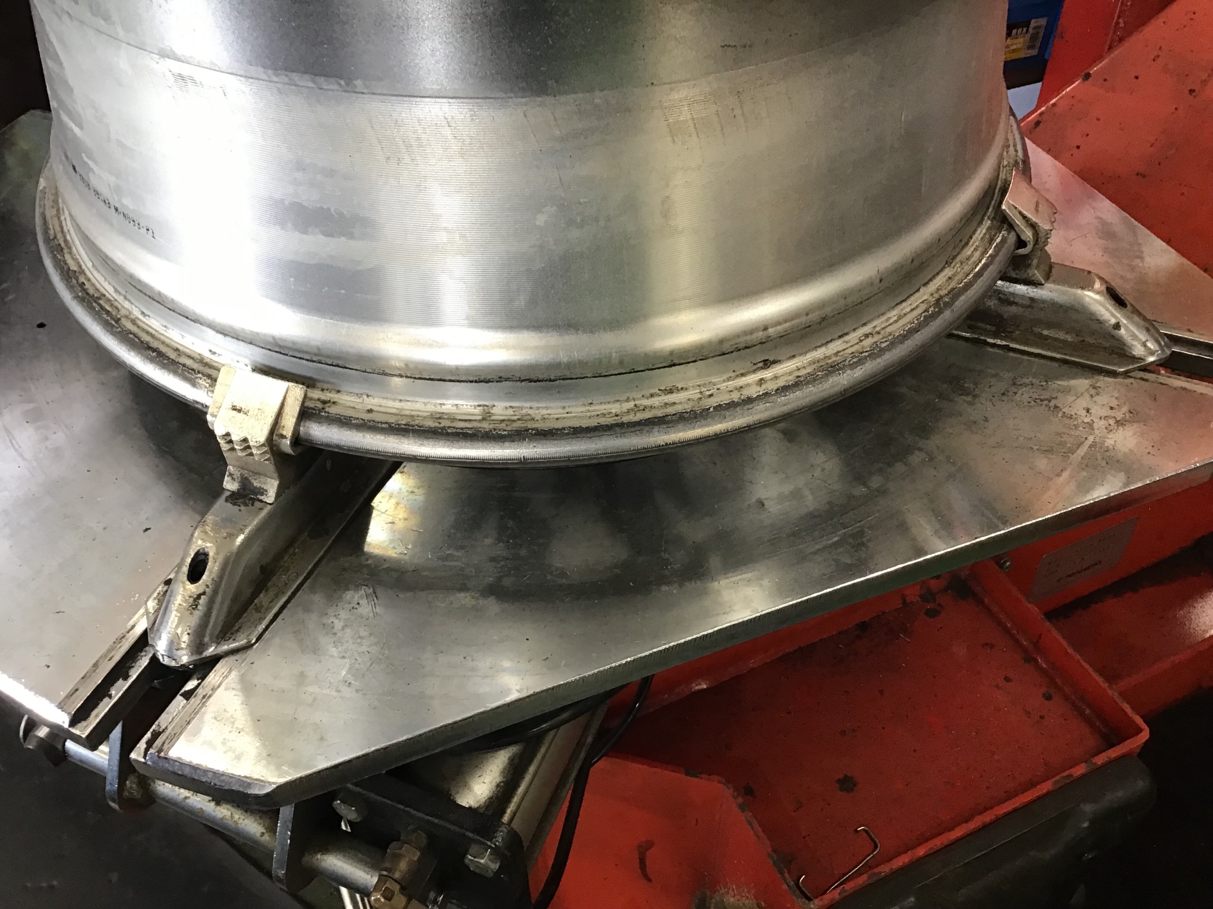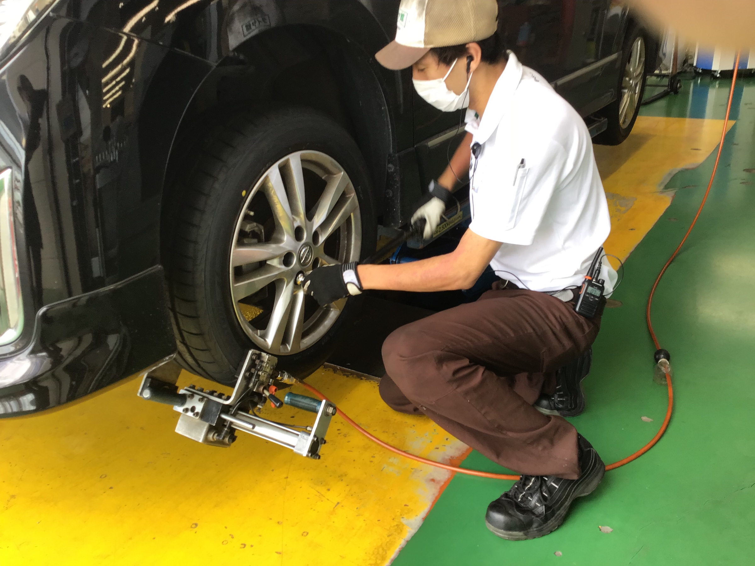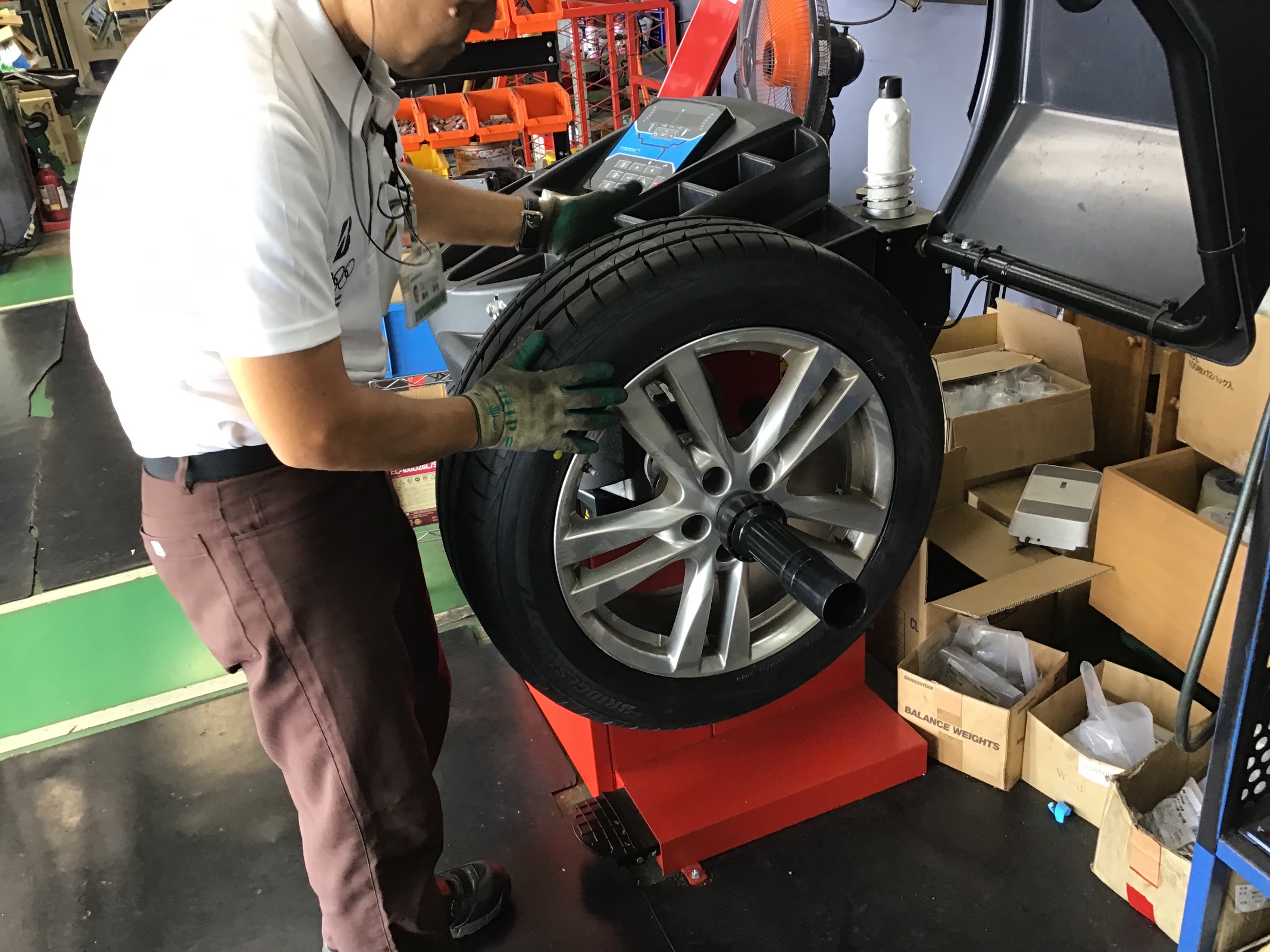 続いて、走行中ハンドルに振動が発生しないようにホイールバランサーで補正!