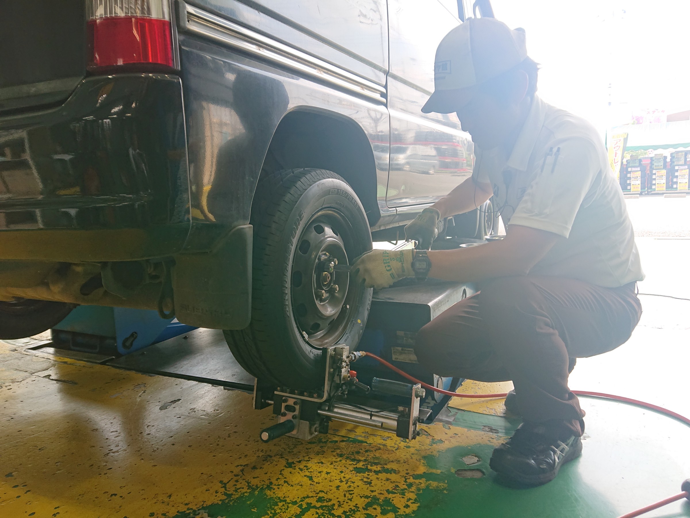 取り付けは、タイヤ館のお家芸「センターフィット」で