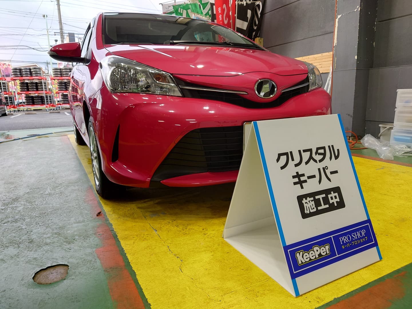 トヨタ ヴィッツへ、クリスタルキーパーの施工です。