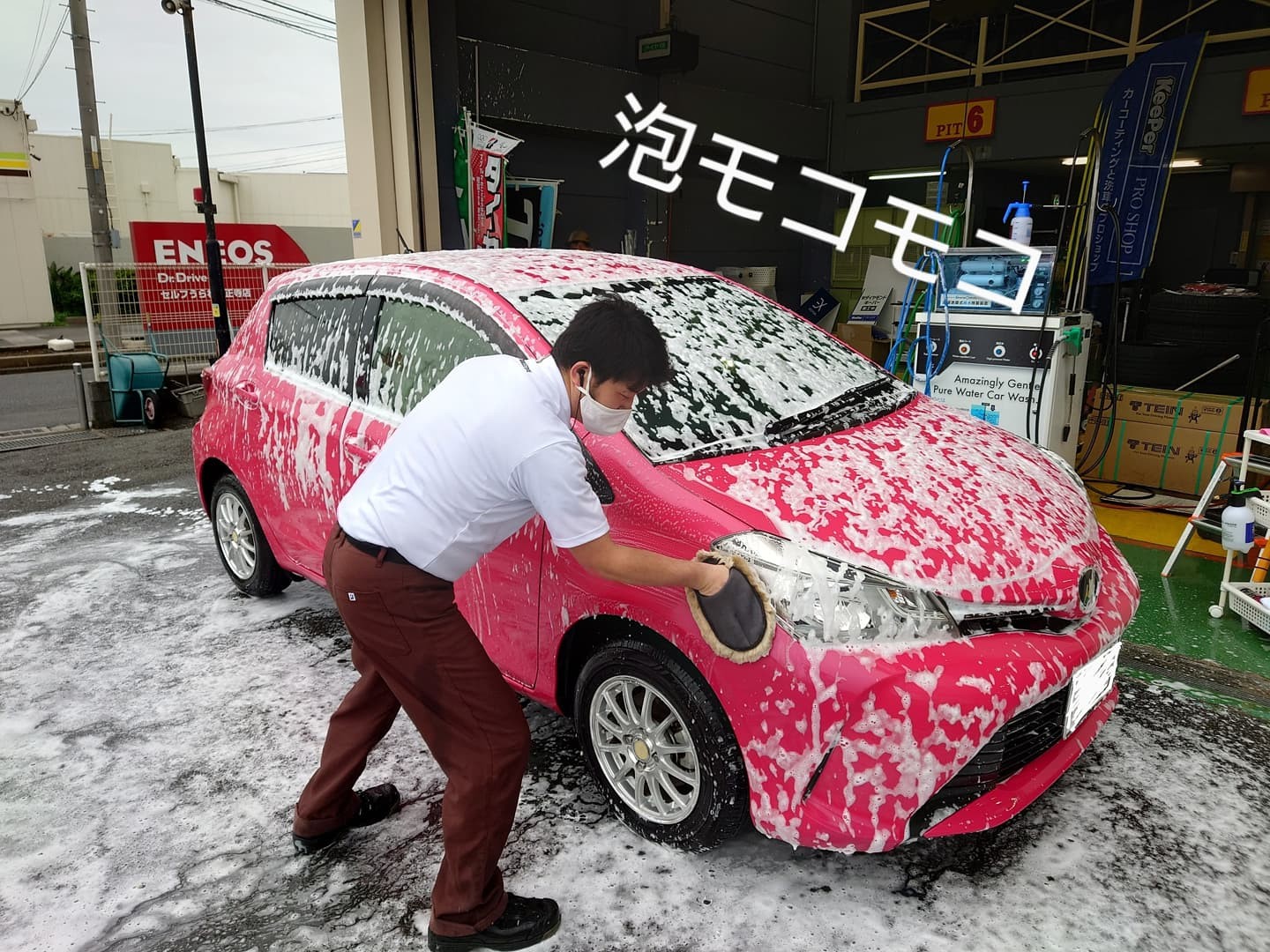 先ずは、泡をふりかけモコモコ洗車