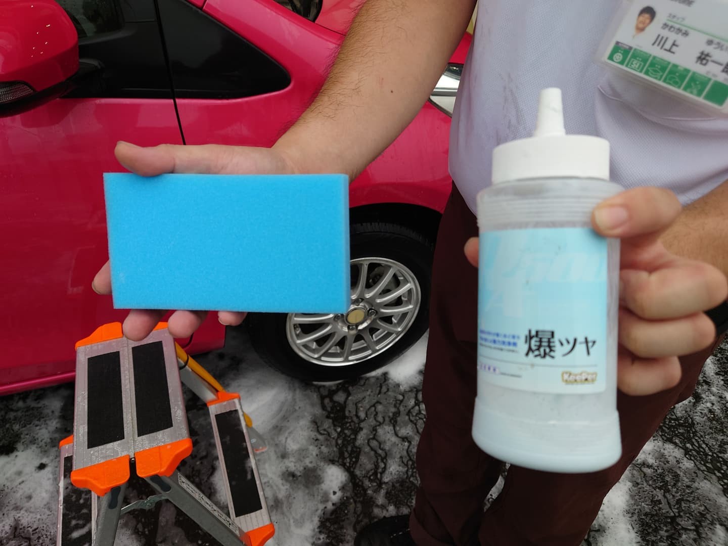 そして、洗車では取り切れない汚れを「爆ツヤ」で取って行きます。