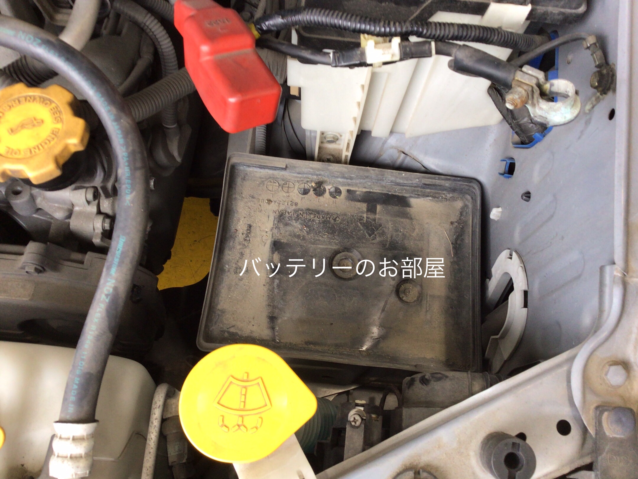 バッテリーの外し方はマイナス端子から。その次にプラス端子を外します。