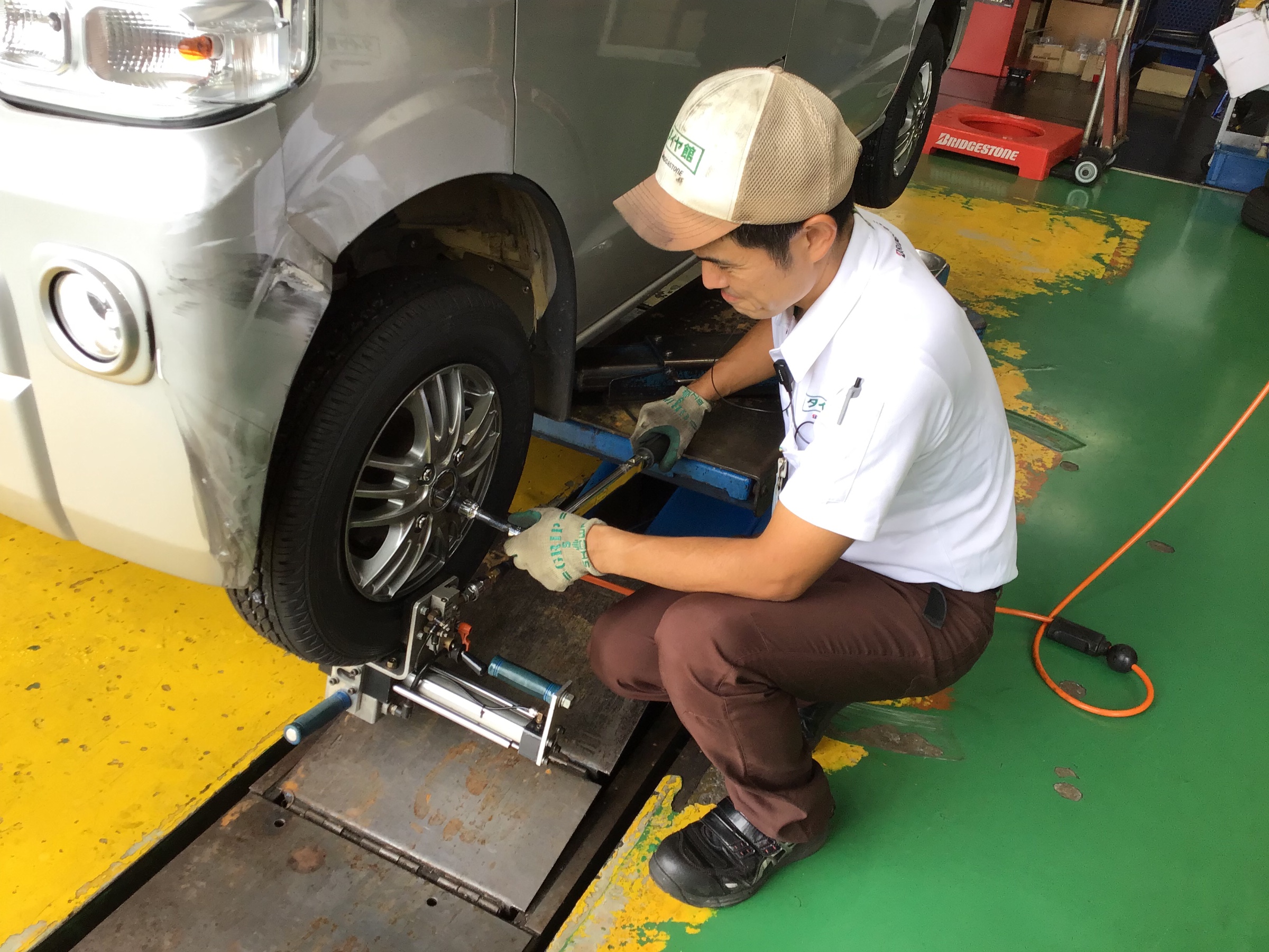 取り付けは、タイヤ館のお家芸「センターフィット」で
