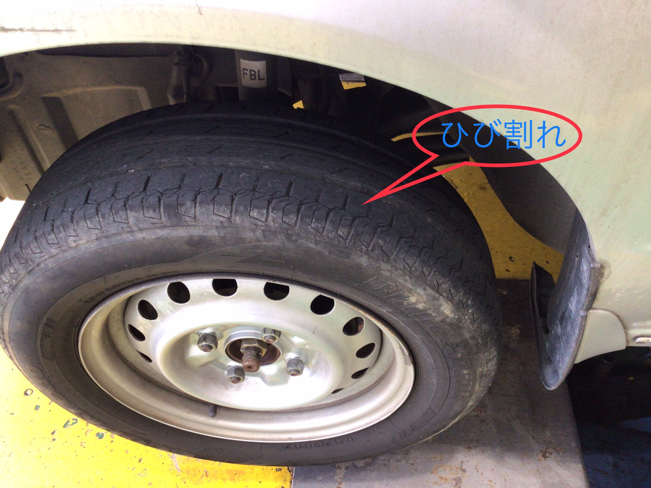 交換前のタイヤは、経年劣化によるヒビが発生していました!
