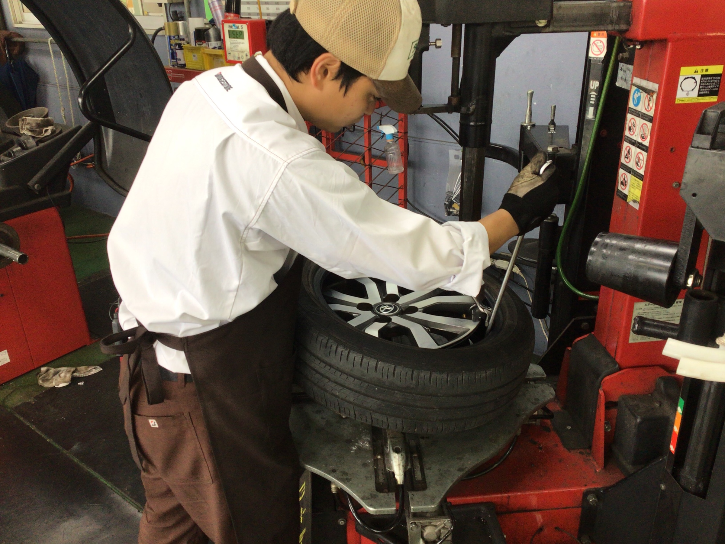古いタイヤを外して、新しいタイヤを組み込みます!