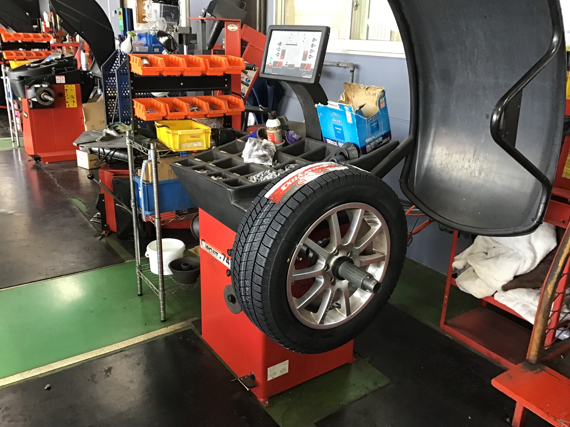 続いて、走行中ハンドルに振動が発生しないようにホイールバランサーで補正!